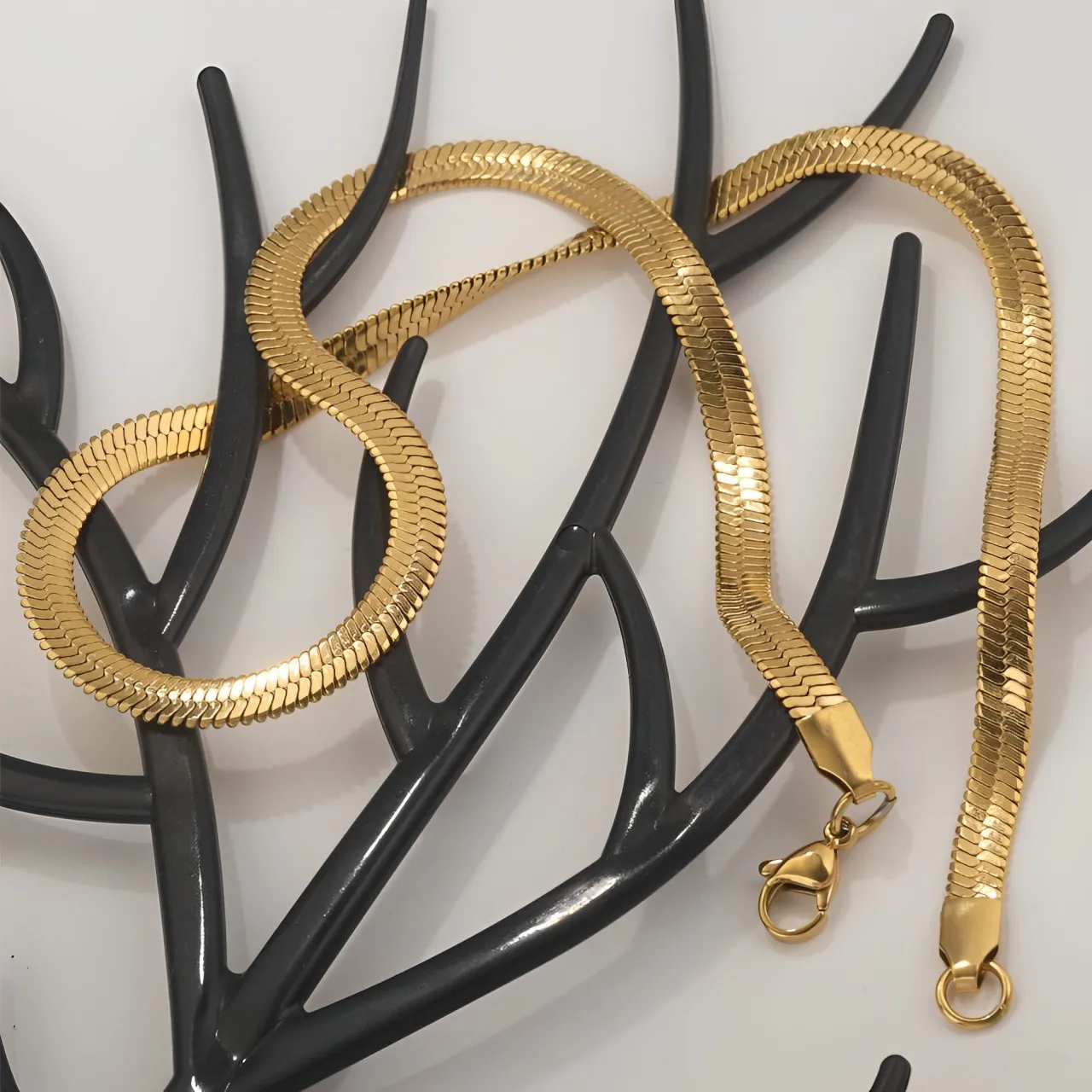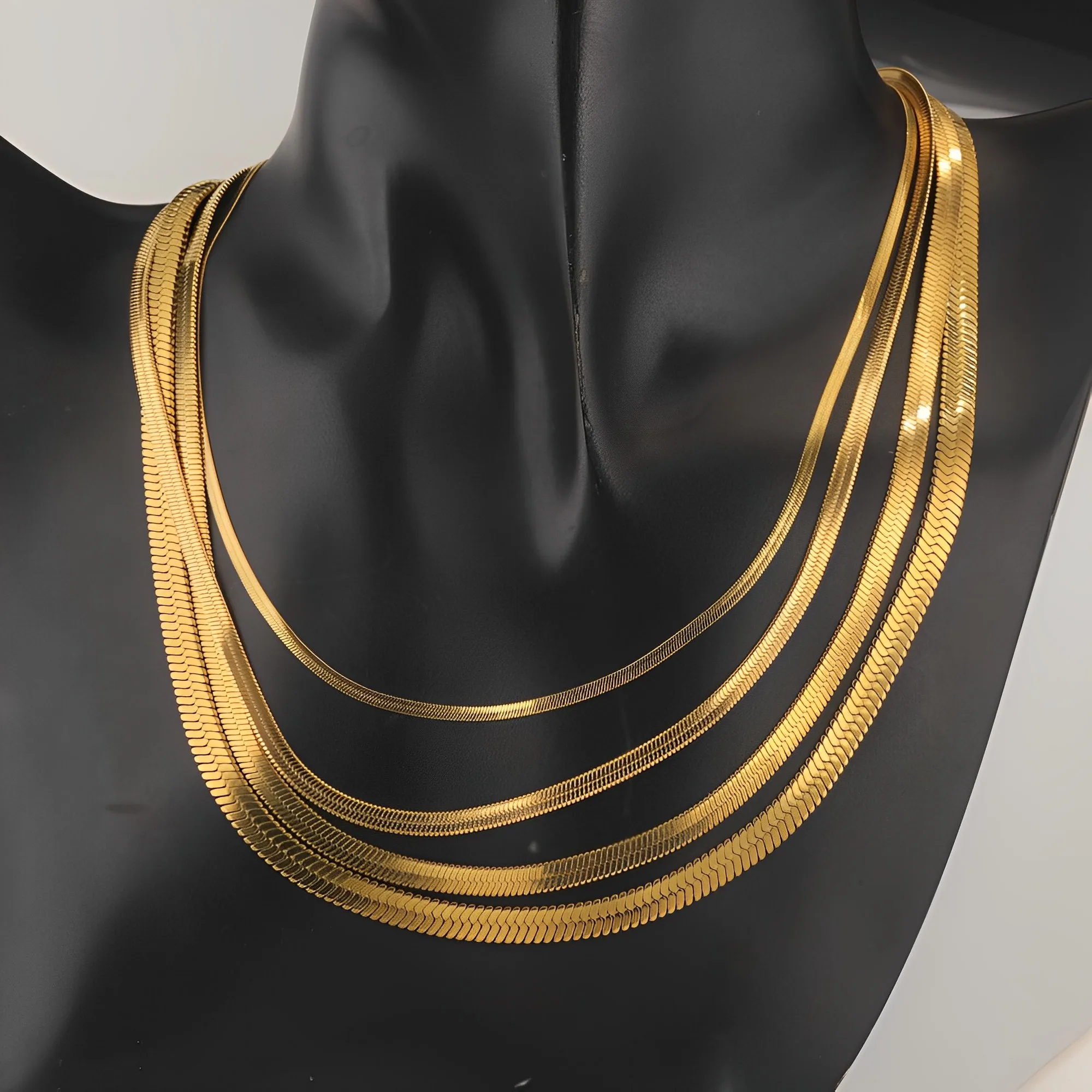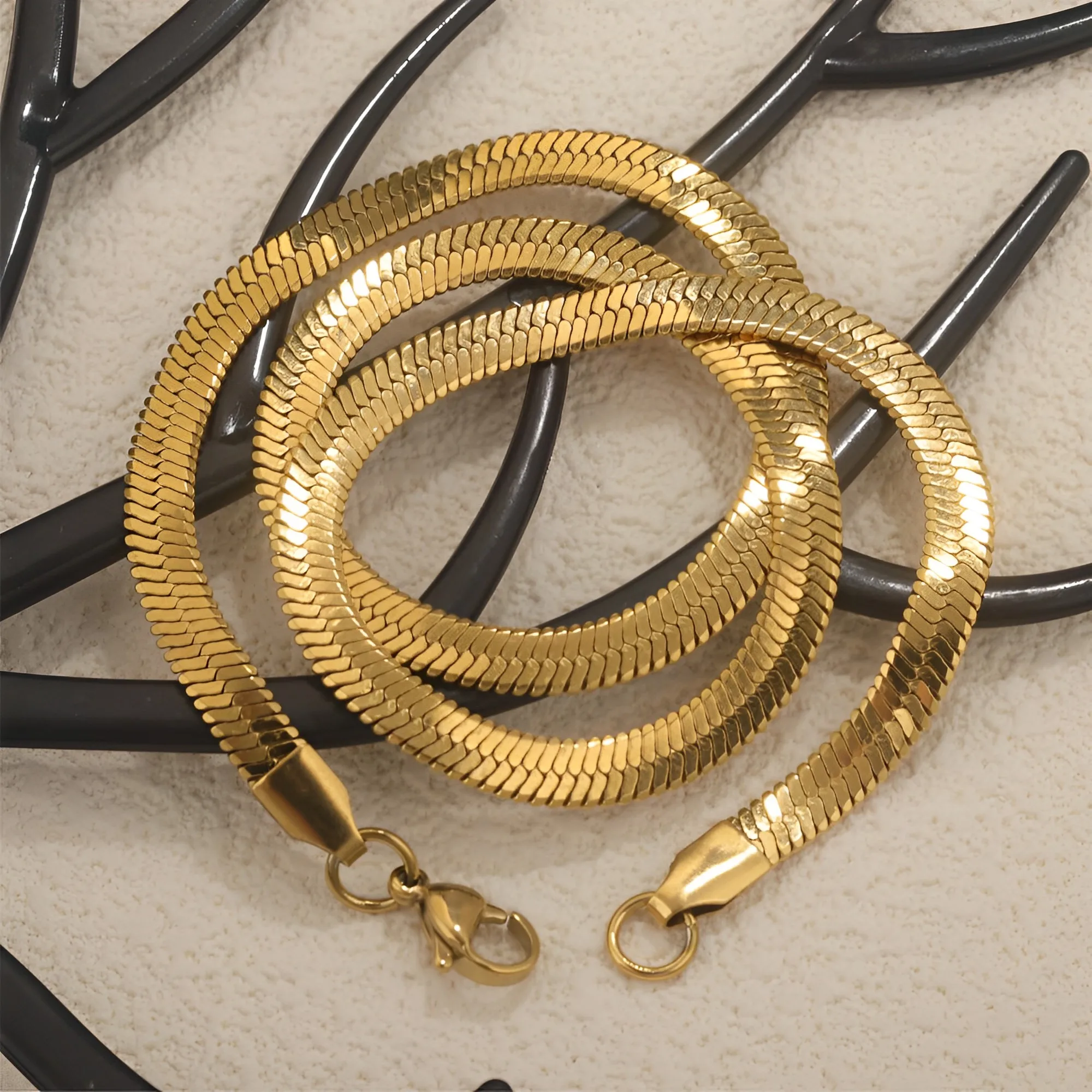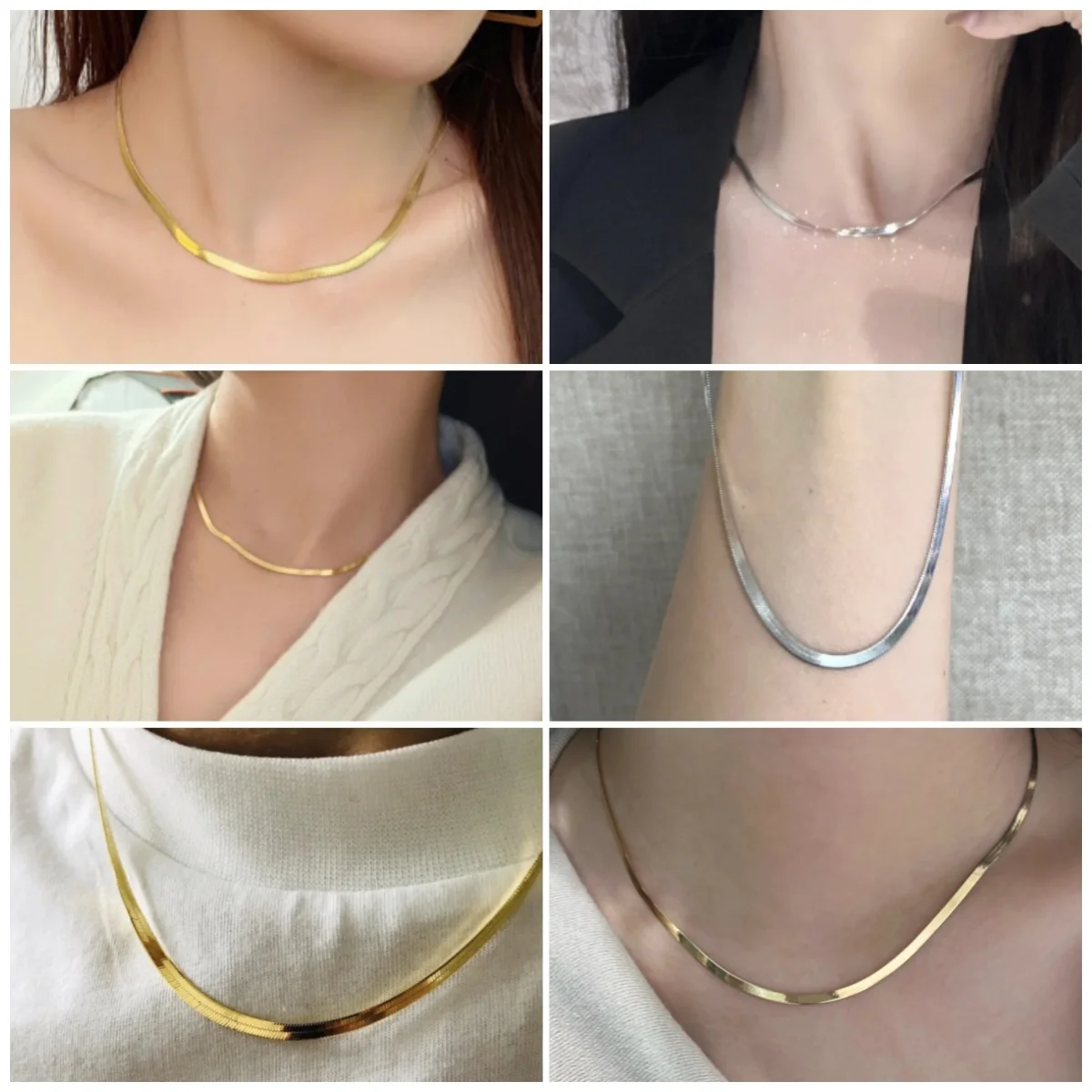 SPECIFICATIONS Gender: Unisex Item Type: Necklace Chain Type: Snake Chain Metals Type: Stainless Steel Colors: Gold, Silver Size: as shown... Read more
