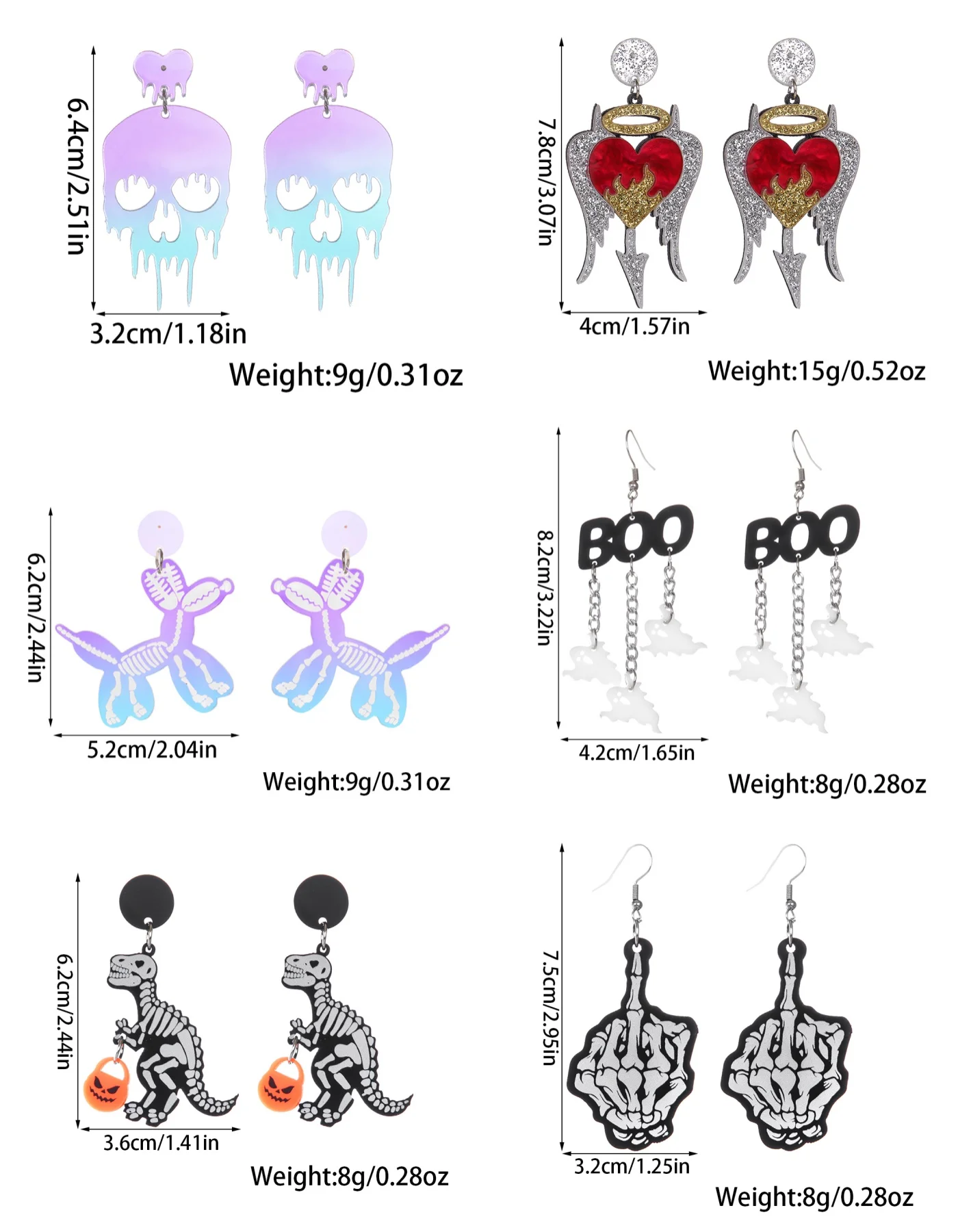 SPECIFICATIONS Gender: Unisex Item Type: Earrings Material: Acrylic Metals Type: Stainless Steel Quantity: 1 pair Shape\pattern: Halloween Style: Dark,... Read more