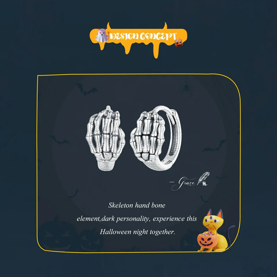 Skeleton Hands Ring & Earrings
